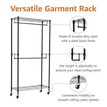 Garment rack with upper and lower hanging rods, plus side-swing adjustable-height arm hanger