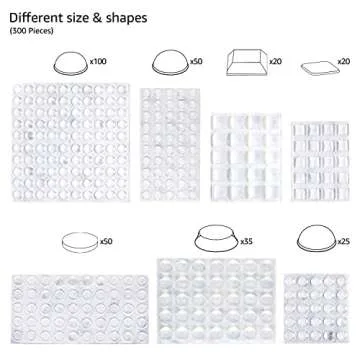 Show more If you're looking to enhance your home environment while protecting your furniture and surfaces, look no further than this exceptional 300-piece set of cabinet door bumpers. These innovative bumpers are designed to prevent surface damage and reduce noise caused by slamming doors, effectively creating a quieter and more serene household atmosphere. Ideal for various uses, they comfortably cushion cabinets, drawers, and even laptops, providing vital protection where it matters most.