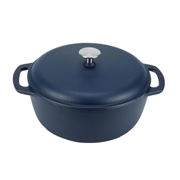 Show moreIf you're seeking a perfect union of practicality and style in the kitchen, look no further than the Amazon Basics Cast Iron Dutch Oven Pot. This premium-quality cooking essential not only impresses with its striking Matte Navy finish, but it is also built to endure high temperatures up to 500 degrees Fahrenheit, making it the ideal choice for all your culinary endeavors. Crafted from durable cast iron, this dutch oven is designed for those who love to cook and entertain, ensuring that every meal you prepare is cooked evenly and precisely, thanks to its superior heat retention.