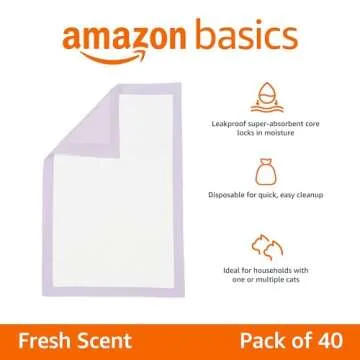 Amazon Basics Cat Pad Refills for Litter Box, Fresh Scent, Pack of 40, Purple and White