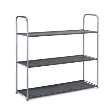Show more Introducing the Amazon Basics Closet Storage Organizer, a perfect blend of style and practicality that transforms any cluttered space into a serene haven! This versatile organizer is designed to accommodate a variety of items, whether you're storing shoes, accessories, or clothing essentials. Featuring three durable fabric shelves capable of supporting up to 10 pounds each and two collapsible fabric drawers with easy-to-use handles, you can conveniently store up to eight pairs of shoes along with scarves, gloves, and other items. Its robust powder-coated steel frame guarantees long-lasting stability, while the chic dark-gray fabric adds a touch of elegance, making it a fashionable addition to your home decor.
