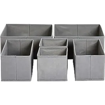 Show more Introducing the ultimate solution for keeping your space organized and clutter-free: a set of 6 drawer organizers by Amazon Basics. These organizers come in three different sizes—small, medium, and large—with two of each size, making them perfect for a variety of storage needs. Crafted from strong yet breathable cloth, these organizers not only offer durability but also maintain an elegant aesthetic for any room in your home. The collapsible design provides the flexibility to store them away when not in use, saving valuable space.