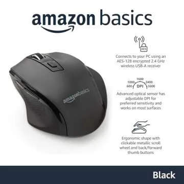 This mouse stands out as a no-nonsense device that excels in functionality without the unnecessary fluff often found in other products. Its simplicity is attractive while still delivering top-notch performance, ensuring it meets all your navigation needs seamlessly. Don't compromise on quality; choose the Amazon Basics Ergonomic Wireless PC Mouse for your daily computing tasks!