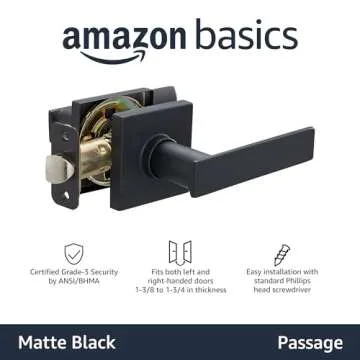 Amazon Basics Contemporary Stamford Door Lever- Passage -Matte Black, 1-Pack