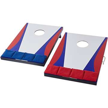 Show moreStep up your outdoor game experience with the Amazon Basics Cornhole Set. This expertly crafted set is designed for enthusiasts and casual players alike, making it an excellent addition to your family gatherings, barbeques, and picnics. Each purchase includes two durable cornhole targets and eight high-quality bags (four in vibrant red and four in classic blue), ensuring you're ready for competitive fun right out of the box. Crafted from premium plywood with a solid-wood base, these boards are not only stylish but also built to withstand the rigors of outdoor play, guaranteeing long-lasting enjoyment.