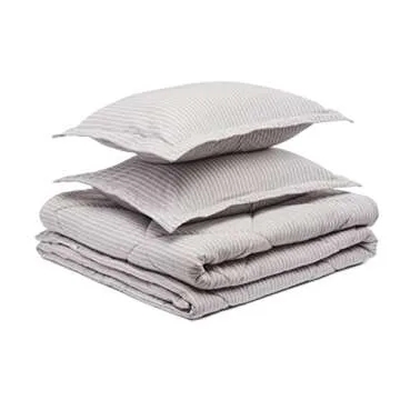 Show moreTransform your bedroom into a cozy sanctuary with the Amazon Basics Jersey Knit Comforter Set, a perfect blend of style and comfort. This soft and breathable comforter is designed for year-round use, featuring a balanced 200gsm filling that ensures you stay comfortably warm without overheating. The set includes a generously sized Full/Queen comforter measuring 90 x 90 inches along with two matching pillow shams, crafted in a chic gray stripe that adds elegance to any decor.