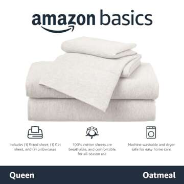 Amazon Basics Cotton Jersey 4-Piece Bed Sheet Set, Queen, Oatmeal, Solid
