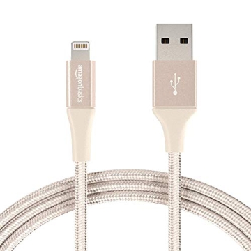Amazon Basics Double Braided Nylon Lightning to USB Cable, Advanced Collection, MFi Certified Apple iPhone Charger, Gold, 6 Foot