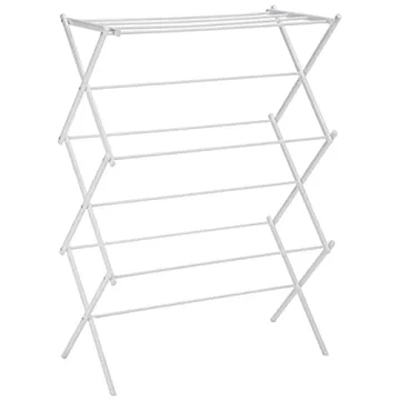 Show moreIntroducing the Amazon Basics Foldable Laundry Rack for Air Drying Clothing, an essential addition to your laundry room that effortlessly combines functionality and convenience. This laundry rack is designed to help you save energy while treating your garments with the care they deserve. Made from durable, lightweight steel with a sleek white finish, it not only stands strong but also protects against rust and mildew, ensuring longevity. Its innovative accordion-style design allows for easy setup and collapse, making it a breeze to store away when not in use. Whether you’re drying your favorite jeans, delicate sweaters, or bulky towels, this rack supports up to 32 pounds of garments, providing ample space to cater to your laundry needs.