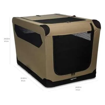 Amazon Basics Folding Soft Crate for Dogs, Cats, and Rabbits - Portable & Collapsible, 36 Inch, Tan
