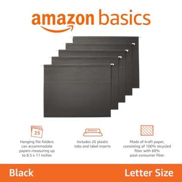 Hanging file folder (25-pack) in Black holds 8.5 x 11-inch letter-size documents and folders