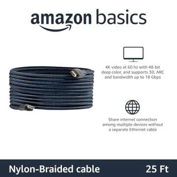 Amazon Basics HDMI Cable 25ft, 4K HDMI 2.0 Cord (18Gbps), Nylon-Braided, 4K@60Hz, 2160p, 48 bit, Compatible with TV/PS5/Xbox/Roku, Black & Blue