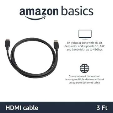 Amazon Basics HDMI Cable, 3 Feet, HDMI 2.1 to HDMI Cable (48Gbps), 8K@60Hz 4K@120Hz Certified Ultra High Speed, Black, Compatible with PS5/Xbox/TV/Monitor