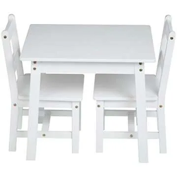 Amazon Basics Kids Solid Wood Table and 2 Chair, 3 Piece Set, White