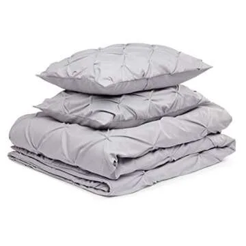 Amazon Basics Light-Weight Microfiber Pinch Pleat Duvet Cover Set - 3 pieces, Full/Queen, Light Grey