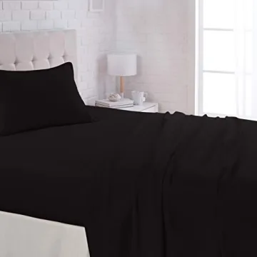 Show more Experience unparalleled comfort and elegance with the Amazon Basics Lightweight Microfiber 4 Piece Bed Sheet Set. Crafted from luxurious 120 GSM brushed microfiber, this set is designed to transform your sleeping experience into something extraordinary. With a silky-soft feel that rivals high-end bedding, you can indulge in ultimate relaxation every night. Available in a sleek black solid color, these sheets blend seamlessly with any bedroom decor, adding both style and sophistication to your space.