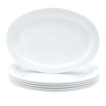 Amazon Basics Melamine Oval Platter Set, 6 Pieces, White - Perfect for Any Occasion