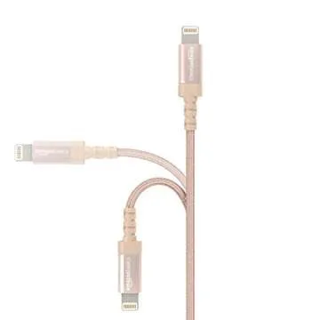 Amazon Basics Nylon Braided Lightning to USB-A Cable, MFi Certified Apple iPhone Charger, 6-Foot, Gold