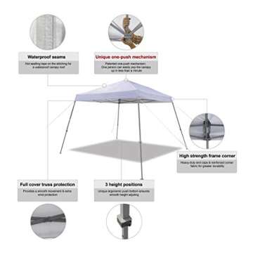 Imagine hosting joyful family gatherings, summer parties, or an impromptu picnic without worrying about the elements. With this canopy, not only will you be protected from the sun and rain, but you will also enjoy the stress-free setup that allows you to focus on making memories. Its robust construction ensures durability, allowing it to be your go-to canopy for years to come. With the added convenience of a wheeled carry bag, transporting your relaxation spot is a breeze. This canopy doesn’t just provide shade; it helps create an inviting outdoor space where laughter and companionship thrive.