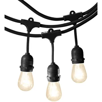Show moreTransform your outdoor space into a captivating haven with the Amazon Basics Outdoor Patio String Lights. Designed for year-round outdoor use, these 48-foot string lights come equipped with 15 durable S14 incandescent bulbs that radiate a warm and inviting glow. Built to withstand the elements, the lights feature an SJTW rating, ensuring they are perfect for any season or occasion. The sleek black string adds an elegant touch to your patio, garden, or backyard, creating a cozy atmosphere where memories are made.