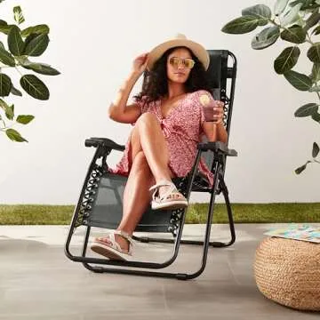 Experience the ultimate in relaxation with the Amazon Basics Outdoor Textilene Adjustable Zero Gravity Folding Reclining Lounge Chair. Designed for those who value comfort and convenience, this black reclining chair transforms your outdoor relaxation experience. With its adjustable zero-gravity feature, it gives you a soothing, weightless feel that allows you to unwind to your heart's content. The padded headrest pillow enhances your comfort, making it perfect for long hours...