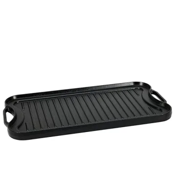 Amazon Basics Pre-Seasoned Cast Iron Reversible Rectangular Grill/Griddle, Black, 20 x 10.39 x 0.98 inch