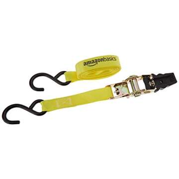 Amazon Basics Ratchet Strap - Pack of 4, Durable Polyester, Yellow