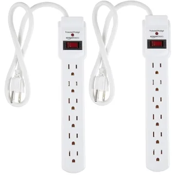 Amazon Basics 6-Outlet Surge Protector Power Strip - 2 Pack, 200 Joules, 2ft White