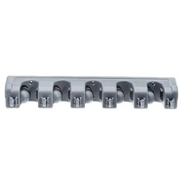 Amazon Basics Rectangular Heavy Duty, Wall Mount Storage Broom, Mop Holder or Tool Organizer with Hooks and Slots for Home, Garage, Garden, Laundry, or Kitchen, Gray, 16.75 x 3.35 x 2.36 Inches