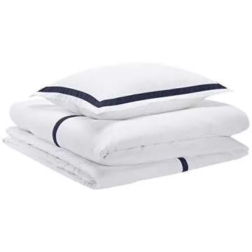 Amazon Basics Ribbon Embellishment Comforter Set - Soft, Easy-Wash Microfiber - Twin/Twin XL, Navy Blue