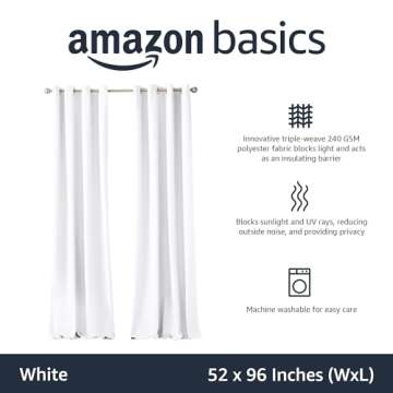 Amazon Basics Room Darkening Light Blocking Blackout Window Curtain with 2 Panels Grommets, for Living Room and Bedroom, 52 x 96 Inches, White - Set of 2