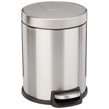 Show moreIntroducing the Amazon Basics Round Cylindrical Soft-Close Small Trash Can, the perfect blend of functionality and style designed for your bathroom or any small space. This 5-liter (1.3-gallon) trash can features a sleek brushed stainless steel exterior that resists smudges, ensuring it always looks pristine in your home. The compact dimensions of 10.6 x 8.5 x 10.7 inches make it an ideal fit for tight quarters, while the removable inner bucket equipped with a carry handle lets you dispose of waste with utmost ease.