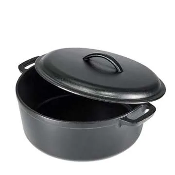 Show more Discover the perfect addition to your culinary tools with the amazing Pre-Seasoned Cast Iron Dutch Oven by Amazon Basics. This versatile kitchen essential is designed to elevate your cooking experience, allowing you to create delicious meals with utmost ease. Crafted from high-quality cast iron, this dutch oven provides excellent heat distribution and retention, ensuring your food is cooked evenly and to perfection every time.