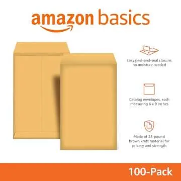 Amazon Basics Self Adhesive Catalog Mailing Envelopes, Peel and Seal, 6x9 Inch, Brown Kraft, 100-Pack