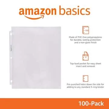 Clear sheet protectors (100-pack) for organizing, storing, and protecting 8.5 x 11-inch sheets of paper