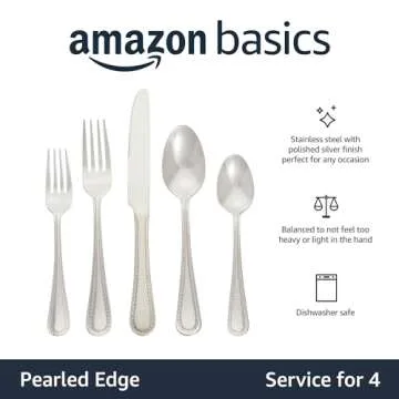 Unlike many alternatives from competitors, the Amazon Basics Silverware Set surpasses expectations with its robust construction at a budget-friendly price. While some brands compromise on durability for style, this set offers an elegant pearled edge while ensuring high rust resistance and dishwasher safety, making it a smarter choice for those wanting quality without overspending. Its balanced weight and larger size enhance user comfort, distinguishing it from lighter, less substantial options that often leave users feeling unsatisfied.