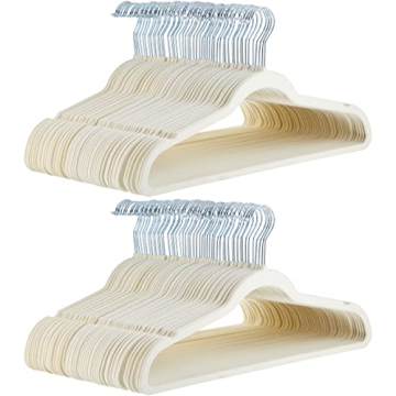 Amazon Basics Slim Velvet Non-Slip Space-Saving Suit Clothes Hangers Pack of 100 Ivory/Silver