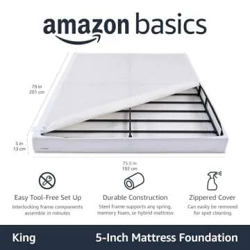 Amazon Basics Smart Box Spring Bed Base, 5-Inch Height Mattress Foundation, Tool-Free Easy Assembly, King, 79"L x 75.5"W x 5"H, White