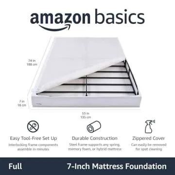 Amazon Basics Smart Box Spring Bed Base, 7-Inch Height Mattress Foundation, Tool-Free Easy Assembly, Full, 74"L x 53"W x 7"H, White
