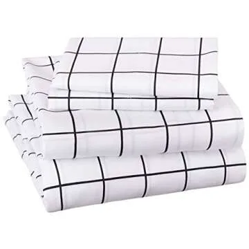 Amazon Basics Soft Microfiber 4-Piece Bed Sheet Set with Elastic Side Pockets, Full, Black Grid, Geometric
