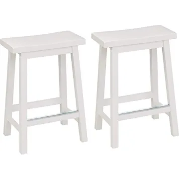 Amazon Basics Solid Wood Saddle-Seat Counter Height Barstools - Set of 2, White