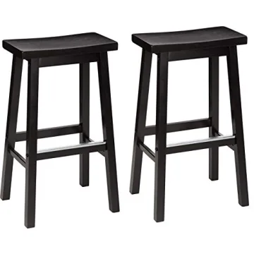 Show moreTransform your kitchen or home bar with the Amazon Basics Solid Wood Saddle-Seat Kitchen Counter-Height Stool. This set of two stools combines elegance with functionality, featuring a solid wood construction and a sleek black finish that complements any decor. The 29-inch seat height is perfect for countertops, offering comfortable seating for dining or entertaining. With an A-frame design and sturdy square legs, these stools ensure stability and support, accommodating up to 300 pounds. The contoured saddle seat and footrests provide added comfort, making them ideal for prolonged use. Easy to assemble and clean, these stools are a practical and stylish addition to any home.