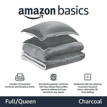 Amazon Basics Ultra-Soft Micromink Sherpa Comforter 3-Piece Bedding Set, Full/Queen, Solid, Charcoal