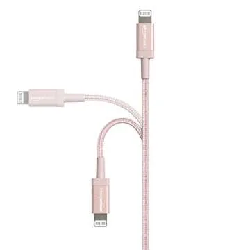 Show more The Amazon Basics USB-A to Lightning Charger Cable is the perfect blend of style and functionality, designed specifically for Apple aficionados. With its elegant Rose Gold finish and a generous 6-foot length, this cable not only complements your devices aesthetically but also offers unparalleled convenience. Engineered for speed, this nylon braided cord is MFi certified, ensuring that every charge and data transfer is efficient and reliable. Whether you're using it to power your iPhone 14, 13, 12, or any other Lightning-compatible device, you can trust that it will deliver a strong connection every time.