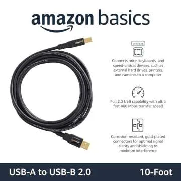 IN THE BOX: (1) 10-foot high-speed multi-shielded USB 2.0 A-Male to B-Male cable