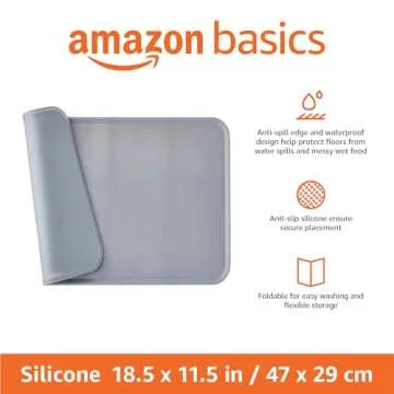 Amazon Basics Waterproof Anti-Slip Silicone Pet Food and Water Bowl Mat, Solid, 18.5 x 11.5 Inches, Gray