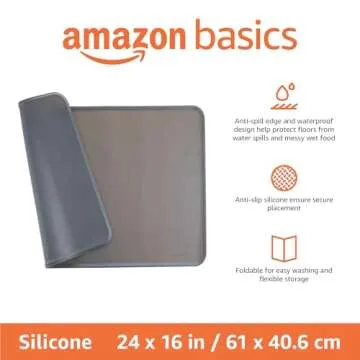 Amazon Basics - Waterproof Anti-Slip Silicone Pet Food and Water Bowl Mat, 24 x 16 inches, Grey, Solid