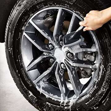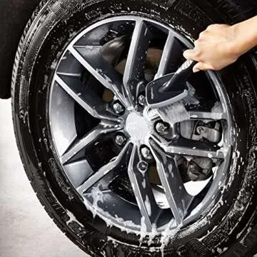 Show moreIntroducing the Amazon Basics Wheel Brush, Short Handle – your go-to tool for pristine wheel maintenance! Designed specifically to tackle dirt, dust, and grime with expert precision, this cleaning brush boasts a range of carefully crafted features that make it a must-have accessory for every car enthusiast. With a handle measuring a convenient 10.6 inches long and soft bristles that are 2-3/4 inches in length, this brush allows you to navigate even the tightest spaces efficiently. Whether you're a DIY detailer or a seasoned pro, you'll appreciate the brush's user-friendly design and top-notch performance.