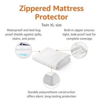 Show moreMeet the Amazon Basics Zippered Mattress Encasement—a game changer for your sleep sanctuary! This Twin XL mattress protector offers 360-degree zippered coverage, ensuring a complete secure barrier against unwanted intruders like bed bugs and dust mites. But that’s not all! With its 100% waterproof barrier, say goodbye to worries about spills and accidents—it protects your mattress from pesky liquid damage. Crafted with flexible polyester fabric and backed by durable polyurethane, this encasement ensures breathable, noise-free comfort, allowing you to sleep peacefully.