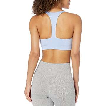 Amazon Brand - Core 10 Women's Standard 'Spectrum' Keyhole Plunge Yoga Sports Bra, Sky Blue Heather, M (8-10)